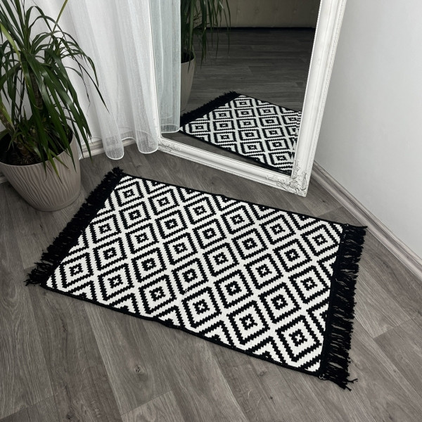 Цей вишуканий плетений килимок із світлим та стильним малюнком стане чудовим доповненням для вашого інтер'єру. Його привабливий дизайн притягує увагу та надає оселі неперевершений вигляд. Крім того, він дуже приємний на дотик завдяки використанню високоякісних матеріалів.Цей килимок може відтворити затишок у вашому будинку, створюючи атмосферу тепла та комфорту. Його унікальна особливість - можливість використання з обох сторін, що додає йому більше функціональності.